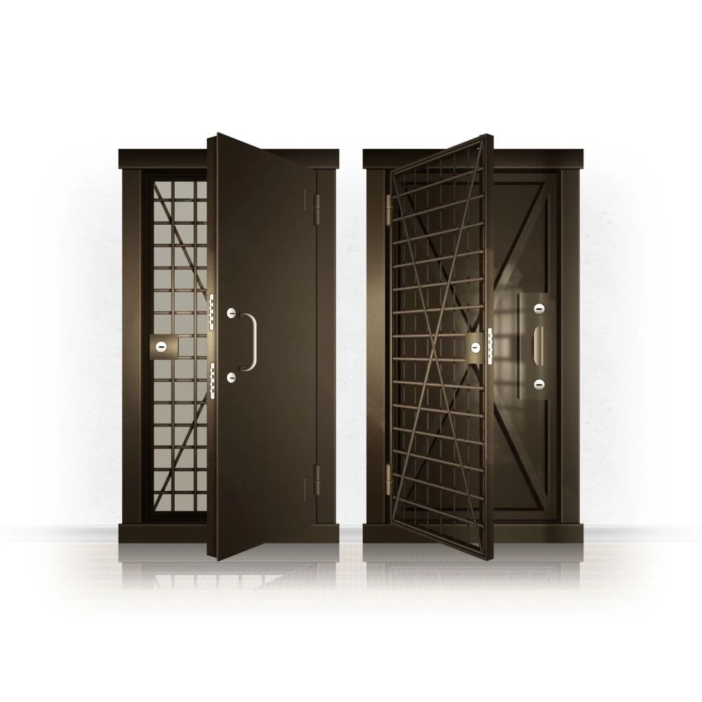 Металлические двери КХО и КХН представляют собой входные блоки, обладающие высоким уровнем взломостойкости и состоят из трех основных элементов: усиленного каркаса, сплошного металлического полотна и решетчатой двери. Дверной блок изготавливается из стального уголка 100*100 мм. Места крепления блока к стене цементируются и закрываются стальными наличниками шириной 40 мм. Крепеж заходит вглубь стены на 80 мм. В конструкции внешней створки монтируются ребра жесткости, для обшивки используется сталь толщиной не менее 3 мм. Внутренняя решетка изготавливается из прутка диаметром 16 мм. Размер ячеек решетки должен составлять не более 15 на 15 см. В точках пересечения прутья надежно приваривают друг к другу. В КХО и КХН необходимо поддерживать определенную температуру и влажность. Для этого внутреннее пространство глухой двери заполняется теплоизоляционным материалом, а по периметру двери приклеивается уплотнитель. Такие двери оборудуются замками с повышенным уровнем взломостойкости. Специализированные двери КХО и КХН в Кадникове могут быть оснащены сигнализацией, в конструкции могут быть проушины для навесного замка и элементами для опечатывания. Если идет речь о двери в комнату хранения оружия, в створке оборудуется окно для выдачи оружия и спец. средств, которое накрывается стальной дверцей.