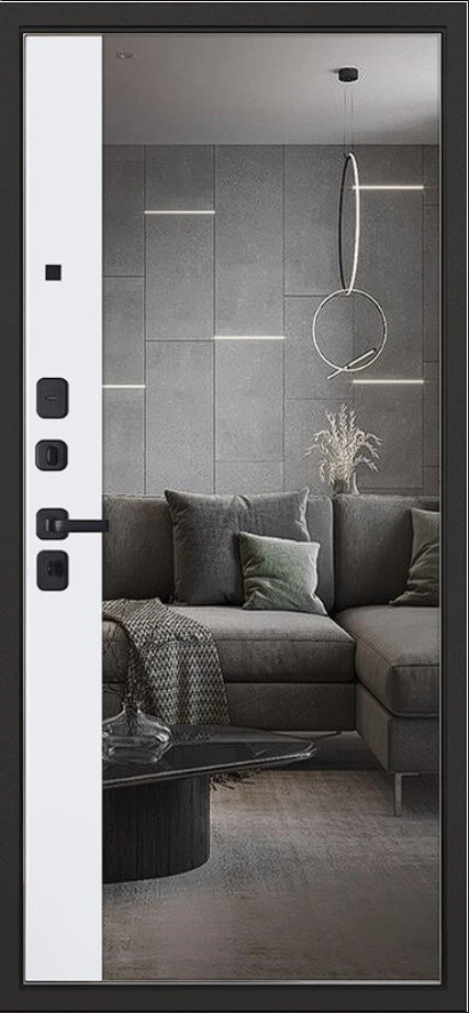 Надежная входная Дверь Scandi с зеркалом премиум класса по цене 44 807 руб. Большая толщина стали защитит от проникновения в ваш дом, квартиру или коттедж. Используется очень качественная фурнитура: замки, цилиндры, ручки, защелки. Покрытие и отделка двери изготовлено под внимательным контролем производителя. Дверь имеет долгий срок службы и гарантию.
