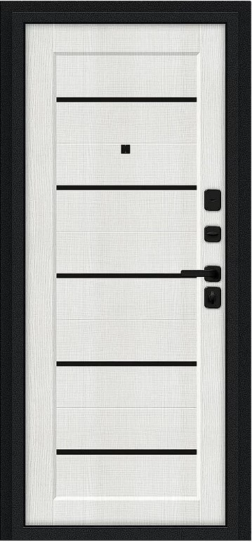 Надежная входная Дверь Браво Борн/SBlack Букле черное/Bianco Melinga премиум класса по цене 33 107 руб. Большая толщина стали защитит от проникновения в ваш дом, квартиру или коттедж. Используется очень качественная фурнитура: замки, цилиндры, ручки, защелки. Покрытие и отделка двери изготовлено под внимательным контролем производителя. Дверь имеет долгий срок службы и гарантию.