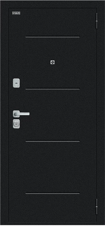 Надежная входная Дверь Браво Техно/BChrome Букле черное/Bianco Melinga премиум класса по цене 34 507 руб. Большая толщина стали защитит от проникновения в ваш дом, квартиру или коттедж. Используется очень качественная фурнитура: замки, цилиндры, ручки, защелки. Покрытие и отделка двери изготовлено под внимательным контролем производителя. Дверь имеет долгий срок службы и гарантию.